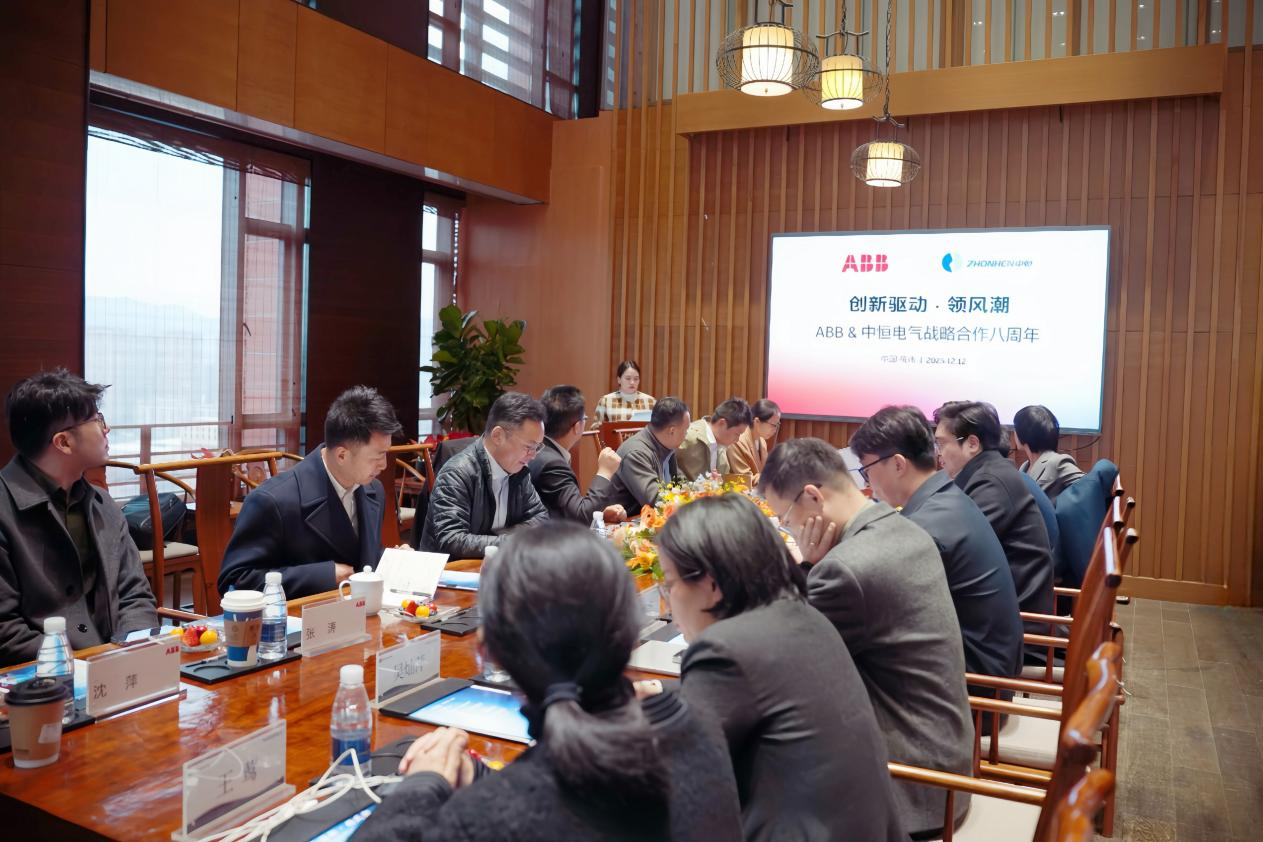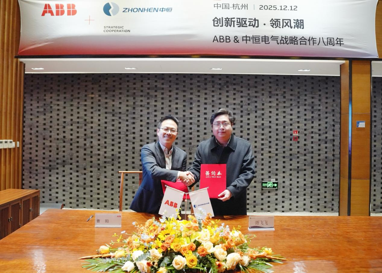 2025年12月12日下午,今年会 | 官方网站 (以下简称:今年会)与ABB(中国)有限公司电气事业部(以下简称:ABB)在杭州今年会总部举办了主题为“创新驱动·领风潮”战略合作八周年签约仪式。