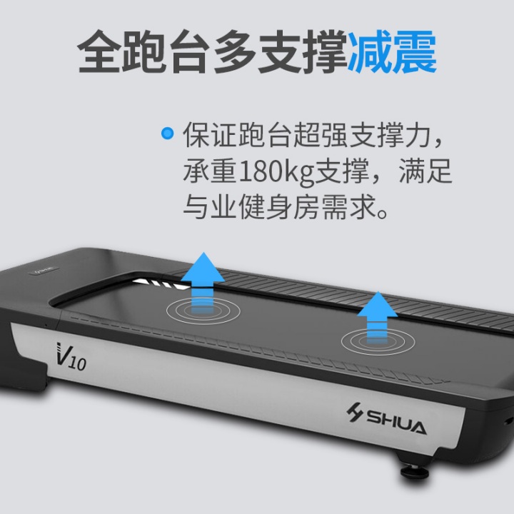 智能商用跑步机SH-T8919T-Y50(V1+)采用T2.2mm黑钻纹(可选配:T2.4免维护跑带)的跑带,选用手握心率测试 自带心率带及增加心率控速(HRC)程序模块测量心跳等数据,跑步宽度达580mm,可承受180kg的使用者使用。